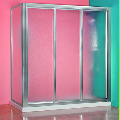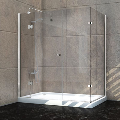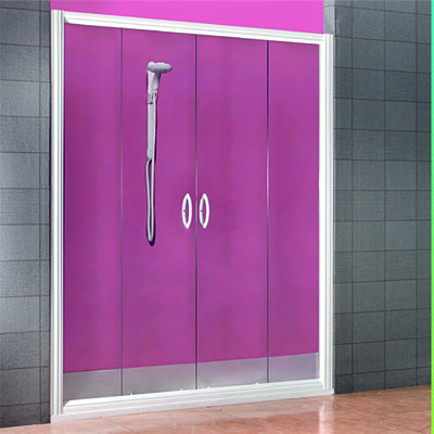 BS- 771 Dos puertas Abatibles y 2 Fijos Laterales unidos a pared con perfilería de alto brillo
