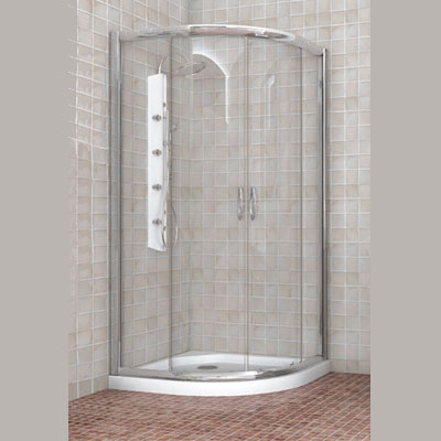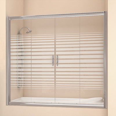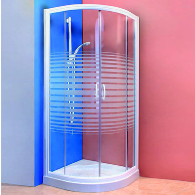RD-485 Dos hojas fijas y dos hojas correderas para ducha circular con cirstal templado de 6 mm serigrafiado.